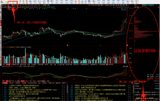 我们先学习一下,如何去找到看筹码峰的地方。