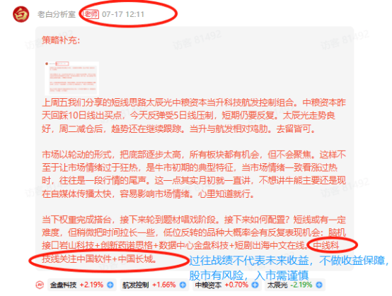 其中所有免费浏览内容由投顾服务人员或团队发布(包含但不仅限于和讯自有投顾人员),均仅代表其对市场所持观点,所载内容、数据仅供参考,参阅文字交流信息、资料及图表的人士,应考虑投资市场风险性。投资者依据本平台提供的信息、资料及图表进行金融、证券等投资项目所造成的盈亏与公司无关。不承诺投资者获取投资收益,也不与投资者约定分享投资收益或分担投资损失。本服务所提供的文字信息、资料及图表仅供参考,并不构成对任何股票的收购、购买、认购、抛售或持有的邀约或意图。