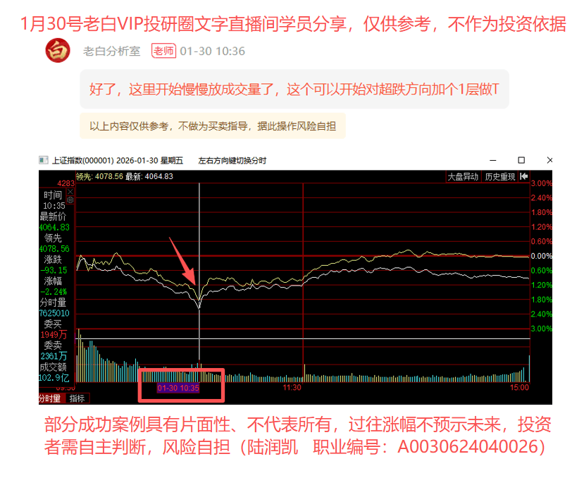 上周五我在文字直播间第一时间提醒大家做T的时机到了,指数是10:35见底,我们是10:36提醒的,可以说是准确把握到了市场节奏,很多学员也是当天就买在了一个很舒服的位置,这不是巧合,而是我们对市场情绪拐点进行量化监测与主动判断的结果。我捕捉的不仅是“低点”,更是市场恐慌脉冲衰竭、多头力量开始凝聚的“确定性瞬间”。