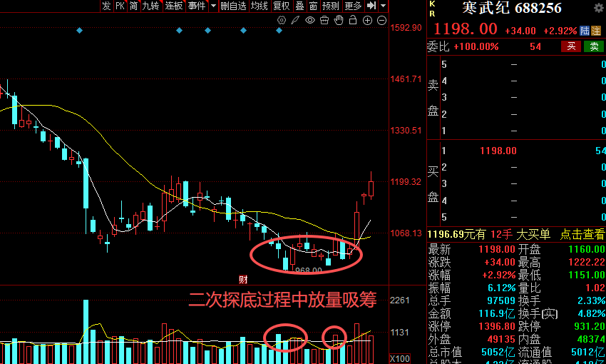 右底探底时缩量:这是最核心的信号!右底二次探底时,成交量比左底缩量至少 30% 以上,说明想卖的散户都卖完了,卖压彻底衰竭,下跌没有了动力;