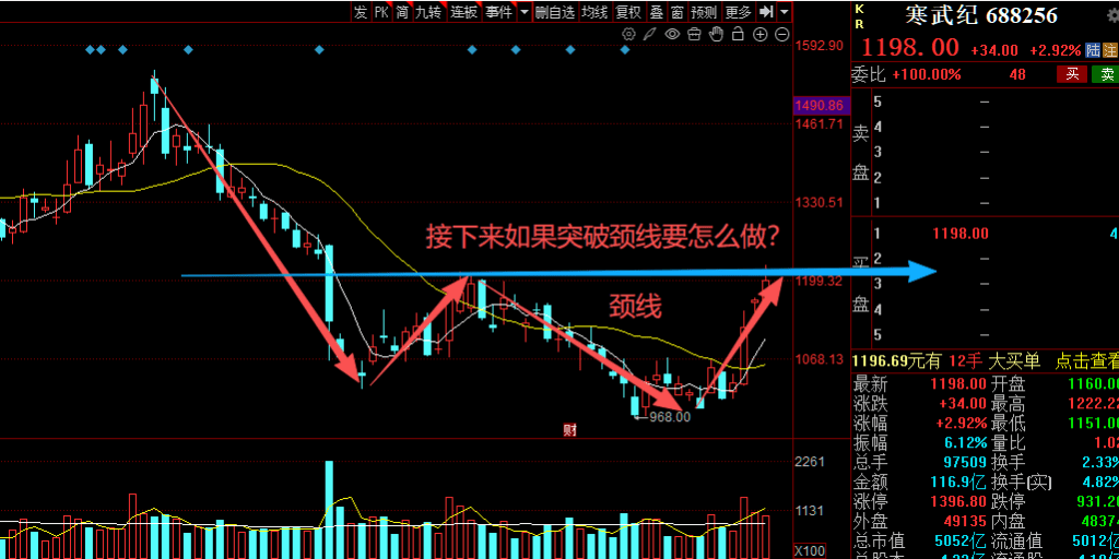 当股价突破颈线时,只用总资金的 10%-15% 轻仓试错,缩量回踩颈线位,企稳收出止跌 K 线时,是最稳妥的重仓加仓点,止损位设置在颈线位下方 3%,一旦跌破且 2 天内无法拉回,立刻止损离场,说明是假突破;回踩确认后再次放量拉升时,坚定持有,以 20 日均线为止盈线,不破就一直拿着。