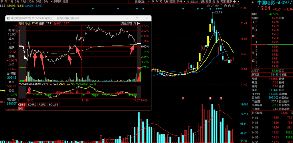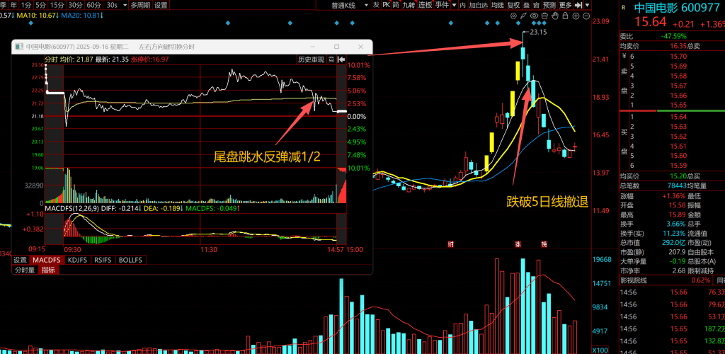 案例4:中国电影,影视板块的容量核心,符合战法介入条件后涨幅约20%。