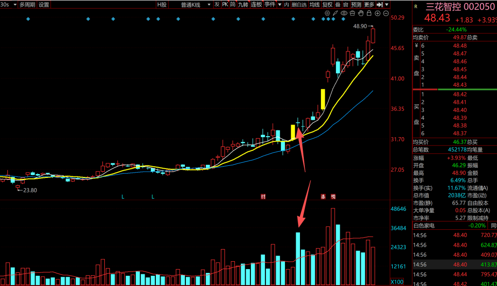 案例2:三花智控,特斯拉机器人代工商核心,符合战法后涨幅约40%。
