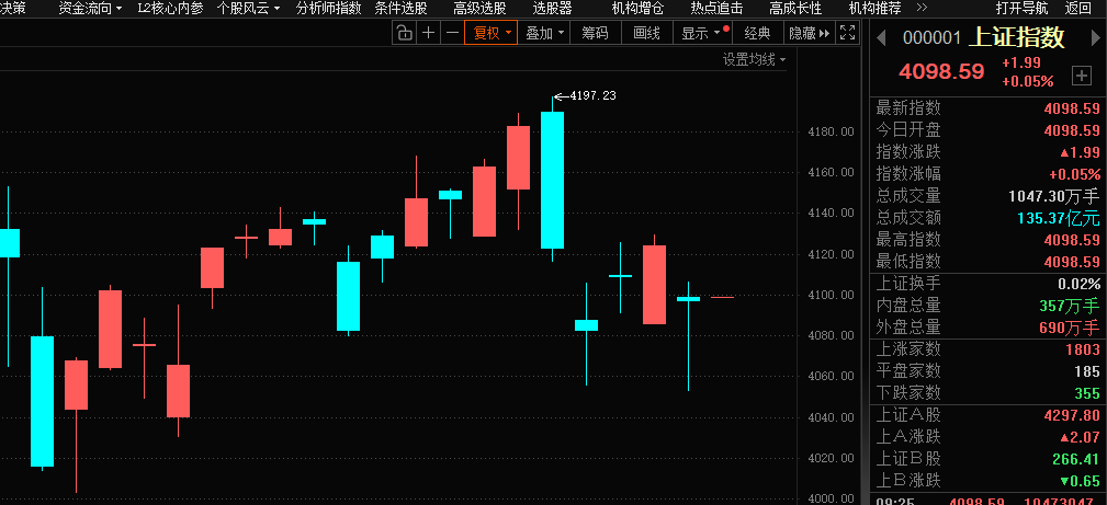 上证指数创新高,光头阳向上突击放量,深圳创业板阴线,而且是锤头线。那么是不是要调整了呢?这种大开大合所谓何来?其实我们要好好反思一下当前市场的一个情况,因为今天实际上主力拉动的板块是什么?上海主要拉的是地产,当然其他的金融板块也配合了,但是主要拉的是地产。地产为什么上拉?是因为7月1号的降息,那么降息无疑对地产形成重大利好。但是一般来讲,在过去相当长一段时间里,降息可能会对地产有影响,但是也没有这么大的动作,也没有对指数形成这么大的影响。而正是在今天7月1号,这样一个非常重要的献礼的日子。央行用降息来配合,二级市场拉动,房地产板块拉动,金融板块,把今天上证指数拉过了3000点,因为我们一直在说上证指数很年轻,10年前是3000点,现在还是3000点。今天一个绚丽的姿态拉过了3000,所以说明什么?说明我们市场背后的资金牢牢的在控制着盘面的一个走势,可谓是一个高水平的控盘的状态。所以这种高水平的控盘状态,我们在今年三四月份的时候已经跟大家讲了,市场的主力实际上是控制盘面,而且从各个角度来讲,实际上正在走牛市到牛市的行情。大家可以去看我们6月2号的那一篇小文章,复盘的小文章不多300字,但是他就点透了未来几年市场的逻辑之所在,一定要把6月2号那一篇看透。
