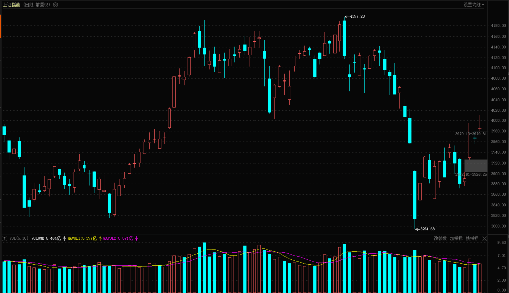 那么这种反弹按照这个位置来看,一般来讲都会是一种比较难受、比较尴尬的反弹。你说你想找买点可能又不太好找,可能突然人家高开了,突然盘中一拉,或者早盘直接高开一到位,或者尾盘往上一提,你基本上没有什么特别合适的这种下手的点,这个很正常。这个属于原有的空头回补,就是在上方人家卖了,在底下人家抄回,所以这会产生一定的买盘的促进。