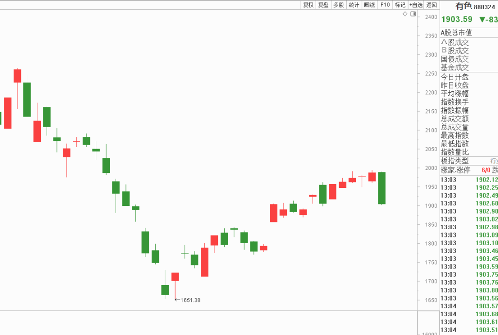 大盘这一轮次的快速杀跌是从7月1日13:54分3601点开始持续到了今日13:25分的3510点,杀的差不多将近100个指数点,整个这一波杀跌多方几乎是没有抵抗的,任由空方宣泄做空的力量,大金融、大龙头等都成为了宣泄的目标,但是从今天13:25分之后你会明显感觉到分时级别的结构出现了变化,每一波震荡的低点开始逐步抬高,并且有一部分龙头个股分时呈现45度角上推的动作,说明有资金开始在这里抄底、开始形成抵抗了。