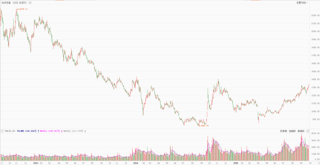 今年以来,光伏行业“反内卷”相关政策持续推进,产业链各条线价格自底部反弹,行业有望迎来盈利修复。9月以来,光伏产业链个股股价表现亮眼,统计显示,光伏概念股9月平均上涨7.82%,跑赢沪深300约4个百分点,阳光电源、聚和材料、晶盛机电9月涨幅均在50%以上。