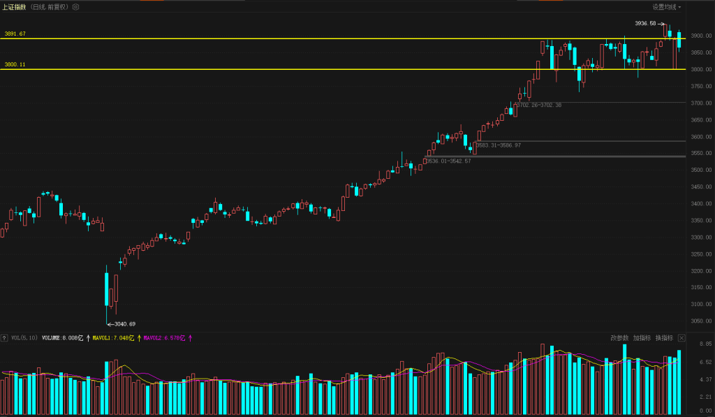 【技术分析】上证指数用高开的方式再次站上了3900点,但是快速跌破了3900点又回到了日线级别的震荡区间,昨天这一颗阳线就是一颗防守阳线,在3800点有资金进行防守,没有跌破区间下轨,而今天指数冲破3900点之后这部分资金又选择了降成本操作,既达到了稳指数的目的、又顺势降了一次成本,多方目前的意图还是希望指数保持震荡结构之中,向上动能不足、向下也有资金在做支撑,短期来看震荡是目前最合理的一种方式,需要一个修整的阶段。而创业板、和科创50等指数已经跌破了昨天的低点,目前主要抛压是来自于本轮带动创业板和科创板反弹的这一批龙头,这些龙头本轮反弹任务已经结束,当这一批龙头开始调整的时候、以银行和保险为首的主板龙头板块开始尝试做止跌结构了,现在又开始新一轮板块切换的阶段,而这个阶段往往会伴随着指数的波动。