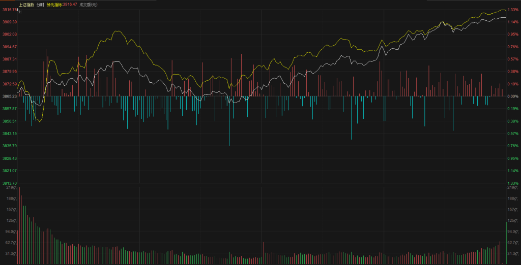 【市场观察】上证指数高开3867点,开盘之后尝试第一波上攻,反弹持续不到1个小时,这一波是电力、金属等领涨,对于指数带动作用并不明显,随后开始震荡回落,临近中午收盘指数开启分时第二波反弹,这一波反弹形成稳步震荡上推、各板块普涨行情,指数反弹持续性比较好,最终上证指数以最高点3912点收盘,上涨1.22%,创业板指数也是同步上涨,但是分时结构走的没有上证指数稳定,最终报收3025点,上涨2.36%。