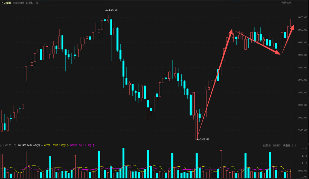 【技术分析】上证指数再次收出了一颗阳线站上了4000点,收盘是4018点、逼近了前期高点4025点,多方近期护盘还是比较坚决的、短期目前是想要突破前期高点,但是目前存在的问题是各大指数又开始出现明显分化,上证指数上涨0.53%是表现最强的,创业板、科创50和北证50等指数都是下跌状态,先来看上证指数30分钟走势,3922点开启的这一波反弹形成一个新的震荡上行结构,这一波反弹就是想要突破4025点,技术走势来看大概率是可以完成突破的,唯一不足的就是成交量配合并不理想,需要一个补量的过程,同时领涨龙头板块开始尝试进行切换,大消费龙头个股集体启动、需要关注这一批个股反弹的持续性。创业板30分钟走势来看,从3068点跟随大盘完成第一波反弹,但是第二波反弹已经跟不上了,早盘第一个小时的跳水形成破位走势,下跌过程中在3140点获得支撑、但是反抽非常弱,现在各大指数开始分化了。