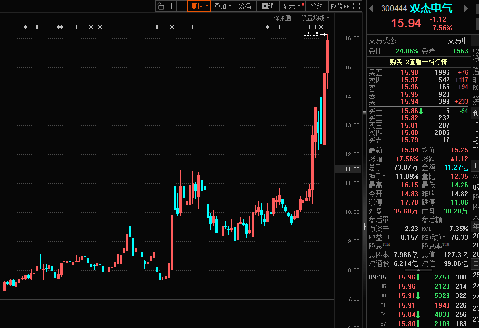 资金动向:资金净流入2.46亿元(排名第一),收盘涨停(10.05%),机构净买入1.25亿元,北向资金净买入8678万元。