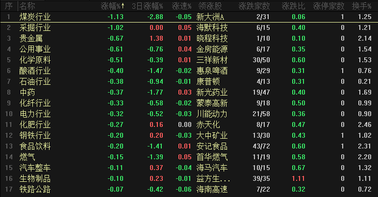 今日板块跌幅靠前的是煤炭行业、采掘行业、贵金属、公用事业、化学原料、酿酒行业、石油行业、中药、化纤行业和电力行业,权重板块大部分都是维持调整状态,这一批“老登股”再次遭到了冷落,特别是酿酒行业近期还创出了新低,茅台已经逼近10月13日低点1415元的位置,不排除短期会形成破位,而白酒其他几只龙头已经开始出现破位的信号,啤酒龙头也是形成震荡下行的结构,如果酿酒板块基本面没有出现明显的改善、就不要着急进场抄底,不要用5年前、10年前的思维来决定酿酒板块的操作。