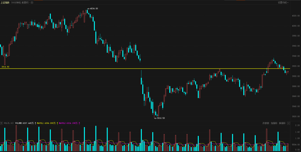 【技术分析】周末一系列利好+重要会议刺激指数短期出现了反弹,首先短期这个反弹还是有意义的,补掉了关键的缺口、消除了未来行情的隐患,打开了上行的空间,这是值得肯定的,但是这并不是一个进攻信号,昨天也讲到了现在各方动作来看并没有着急进攻的意思,各周期还是处于震荡结构之中,30分钟来看,3816点反弹到了3936点,3940点附近有一个压力平台,这里没有成功突破、随后出现了的调整跌破了短期支撑位3914点,跌破这个位置说明这一波小反弹结构已经结束了,再次回到了震荡结构之中,短期关注3900点附近支撑位是否会形成破位、如果再次继续破位短期走势就会比较弱。创业板30分钟来看相对强较强,2892点开始启动反弹、采取震荡上行的方式,今天上冲到了3235点,已经逼近了11月7日高点3240点,压力真空区域反弹相对轻松一些,看下一步面对压力区域创业板能否选择向上突破,这里做了一个小震荡结构、摆出了想要突破的信号,但如果几次没有突破关键位就会成为滞涨信号、近期对于指数的策略讲的也很清楚,小周期如果出现滞涨信号、就是短期策略的减仓点或者离场点。