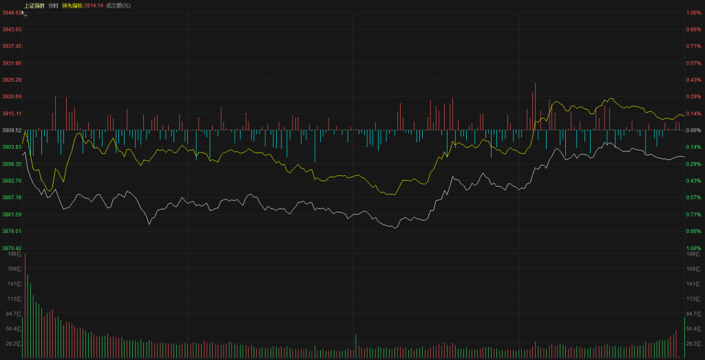 【市场观察】上证指数低开3901点,低开之后出现震荡下行,9:30-13:15分这个阶段指数不断创出低点、最低下探到3876点,13:15之后房地产板块集体拉升带动指数震荡回升,但是仅仅依靠房地产几个板块无法带动指数上攻、大金融等其他板块不配合,最红也是无力翻红、上证指数已经连续2个交易日都没有给红盘的机会,最终上证指数报收3900点,下跌0.23%,创业板指数报收3209点,下跌0.02%。