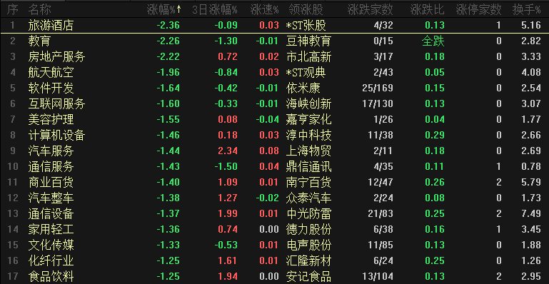 今日板块跌幅靠前的是旅游酒店、教育、房地产服务、航天航空、软件开发、互联网服务、美容护理、计算机设备、汽车服务和通信服务等,近期一批短线强势品种开始出现调整,短期游资高位兑现利润,这必然会导致商业百货等消费板块出现调整,但是布局大消费板块的不仅仅是游资、中长期资金也是有布局的,所以大消费板块短期有所波动、中长期依然会有机会,可以等待二次上车的机会或者低位品种补涨机会。