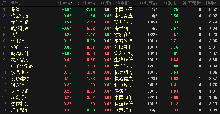 今日板块跌幅靠前的是保险、航空机场、光伏设备、船舶制造、银行、化肥行业、化纤行业和玻璃纤维等,保险和银行两大金融板块继续调整,证券表现也不积极,现在各路资金都十分积极,既然不需要大金融板块、指数也能够维持反弹状态,多方主力部队在这个阶段就没有必要继续进攻、选择保存实力是更好的选择,大金融板块每一次进攻都是有讲究的,都会选择在大盘关键节点,通常会在需要突破关键阻力位、或者是守关键位的时候站出来,理解了大金融的战略意义就能看懂这类板块的走势。