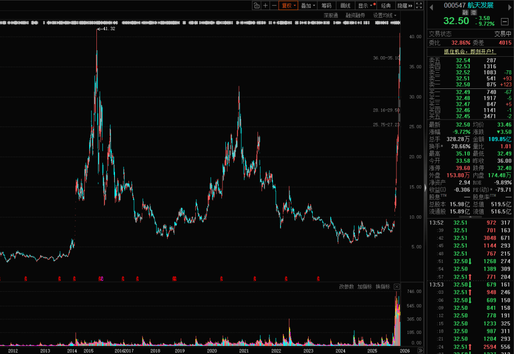 机构与游资分歧白热化:机构在航天电子上净卖出4.29亿元,而游资“作手新一”同步卖出4.63亿元;但机构在中国卫星等核心标的上仍呈现净买入,显示资金在商业航天内部“去弱留强”。