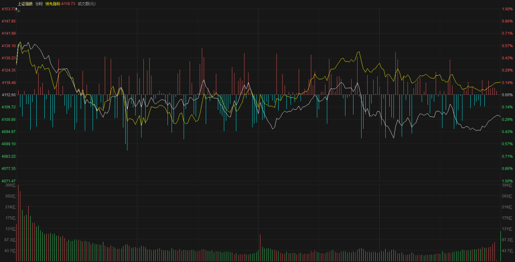 【市场观察】上证指数高开4127点,高开之后开始形成震荡下行、资金再次流出,但是这一波分时下跌结构仅持续了40分钟,伴随着资金流出幅度收窄、指数转为了横盘震荡的走势,黄白线走势比较混乱、特别是白线权重品种表现低迷,分时整体来看,短期利空影响还在逐步消化、买盘并不积极,但是下午盘面来看抛盘力度开始减弱,最终上证指数报收4101点,下跌0.26%,创业板指数报收3361点,下跌0.20%。
