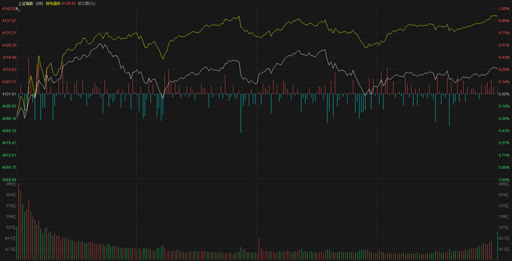 【市场观察】上证指数低开4090点,低开之后形成震荡上行的走势,这一波反弹从9:30开始持续到10:10、最高点上冲到了4126点,分时反弹持续只有40分钟、并且上涨力度也是偏弱,虽然今天是有资金想要尝试修复盘口、但是资金跟进意愿不强,随后走势黄白线开始分化,白线全天处于横盘震荡走势、黄线表现相对较强,最终上证指数报收4114点,上涨0.29%,创业板指数早盘冲高之后呈现震荡下行的走势,最终报收3337点,下跌0.70%。