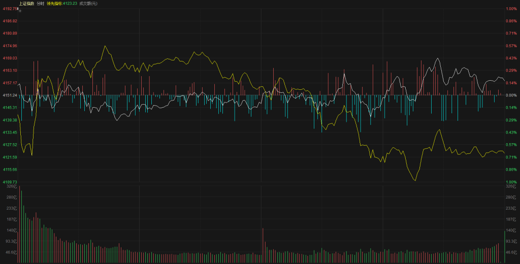 【市场观察】上证指数小幅高开4155点,开盘之后黄白线出现了第一次交叉,黄线开始震荡上行、白线震荡走低,下午开盘之后黄白线多次交叉之后开始转换风格,沪深300龙头品种反弹带动白线震荡上行、而黄线盘中出现跳水的走势,分时整体来看,黄白线多次交叉说明盘面是非常混乱的,这也是近期频繁出现的问题,最终上证指数报收4157点,上涨0.16%,创业板指数报收3304点,下跌0.57%。