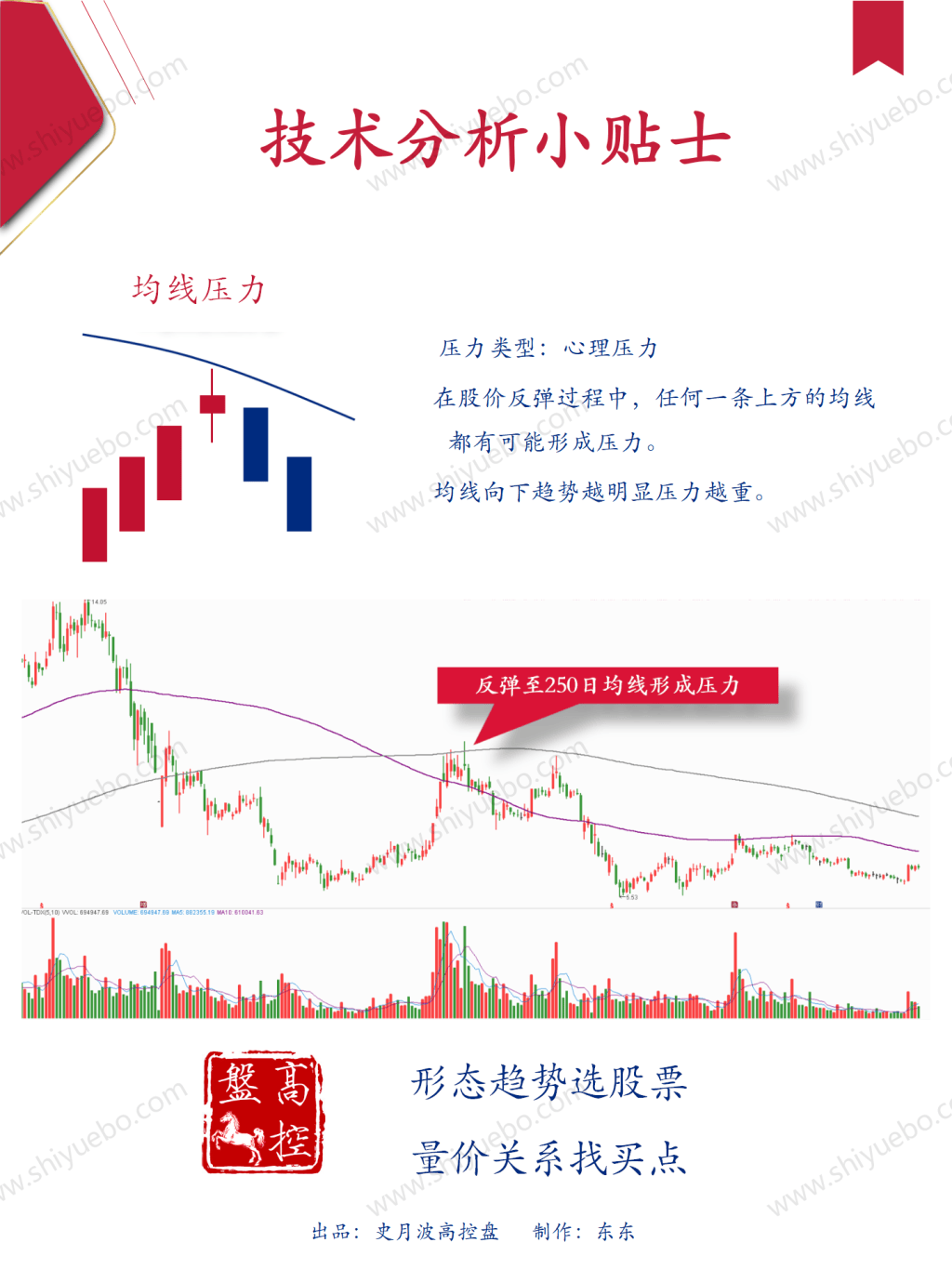 今天的技术分析小贴士:轻松识别支撑与压力——均线压力压力类型:心理压力在股价反弹过程中,任何一条上方的均线都有可能形成压力。均线向下趋势越明显压力越重。