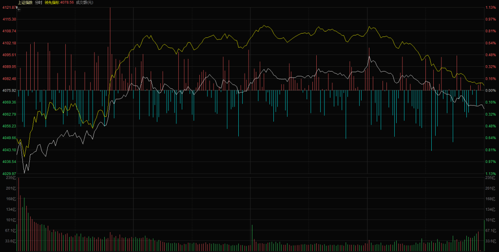 【市场观察】上证指数低开4040点,低开后快速下探,最低点触及 4029 点,随后资金再度护盘,指数形成震荡上行走势,10:30之后大盘翻红,但是反弹力度还是比较弱、这是近期分时走势的典型特点,盘中反弹逼近4100点整数关口没有形成突破,尾盘资金再次流出、指数震荡下行,最终上证指数报收4065点,下跌0.25%,创业板和大盘走势基本一致,最终报收3236点,下跌0.73%。