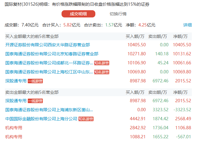 核心龙头的合力封板:国际复材的龙虎榜中,出现了多家知名游资席位的身影。它们并非简单的跟风买入,而是在股价拉升过程中持续加仓,形成了强大的资金合力。这种 “众人拾柴火焰高” 的局面,是龙头股能够持续走强的关键。