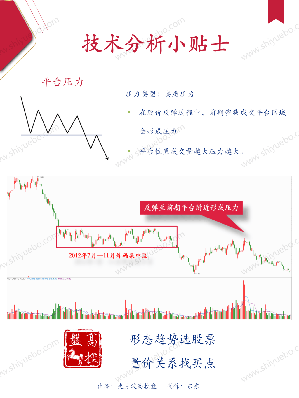 今天的技术分析小贴士:轻松识别支撑与压力——平台压力压力类型:实质压力在股价反弹过程中,前期密集成交平台区域会形成压力平台位置成交量越大压力越大。