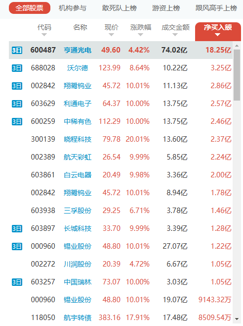 抱龙头:主封型游资全力打造亨通光电这一标杆,趋势型游资与机构联手布局沃尔德、翔鹭钨业,牢牢占据赛道核心地位。
