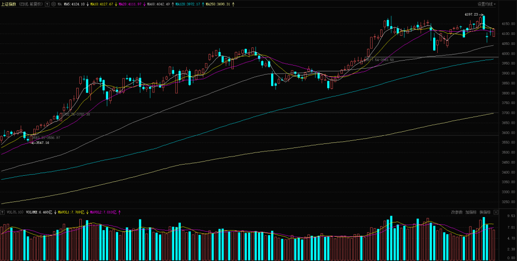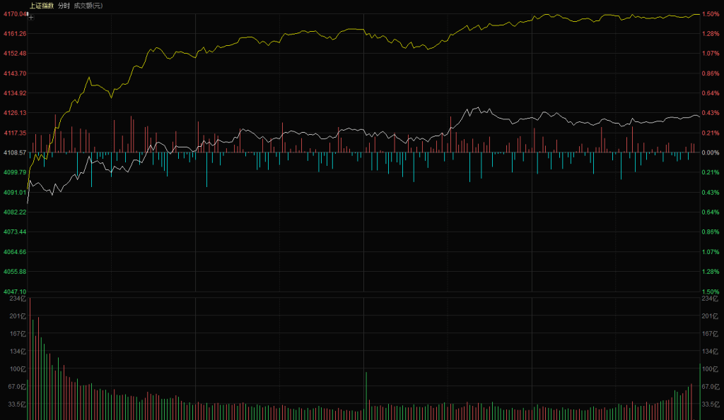 【市场观察】上证指数小幅低开 4085 点,开盘后开启缓慢震荡上推走势,全天维持小幅震荡上行节奏,最终确保收出阳线,但分时并未呈现强势反弹特征:其一,黄白线分化明显,黄线表现相对活跃,而白线涨幅较小,持续分化不利于指数进一步反弹;其二,45 度角上推是资金持续流入的典型信号,今日分时更多是资金防守动作,并非持续流入的进攻信号,多方仍以防守为主。最终上证指数报收 4124 点,上涨 0.38%;创业板指报收 3229 点,上涨 0.38%。