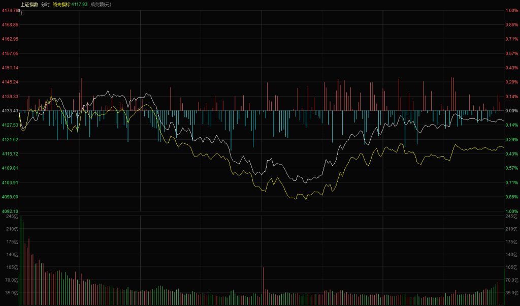 【市场观察】上证指数开盘 4133 点,开盘后首个小时维持横盘震荡,延续此前两日的窄幅震荡格局。10:30 后指数开始震荡下行,黄白线同步走低,伴随资金持续流出,最低下探至 4103 点,考验 4100 点整数关口支撑。13:30 后指数震荡回升,最终上证指数报收 4129 点,下跌 0.10%。创业板开盘即震荡下行,全天走势偏弱,最终报收 3317 点,下跌 0.96%。