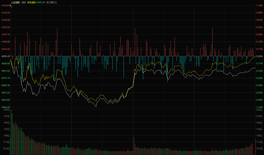 【市场观察】上证指数低开 4092 点,开盘后震荡下行,黄白线同步调整,延续上周分时级别调整趋势。11 点左右创出日内低点 4048 点,午后开盘快速回升至 4080 点附近,随后进入窄幅震荡格局。盘中可见多方护盘动作,但全天未能翻红,最终上证指数报收 4084 点,下跌 0.26%;创业板 11 点后震荡上行,最终报收 3357 点,上涨 1.41%。