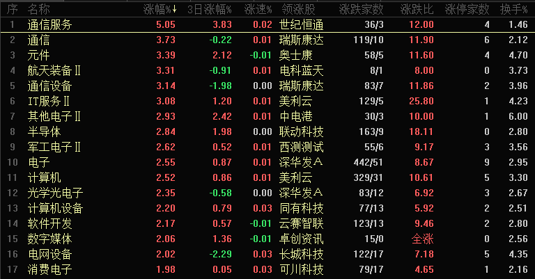 4. 人气板块回暖:科技与军工两大人气板块集体反弹,有效带动市场情绪修复。