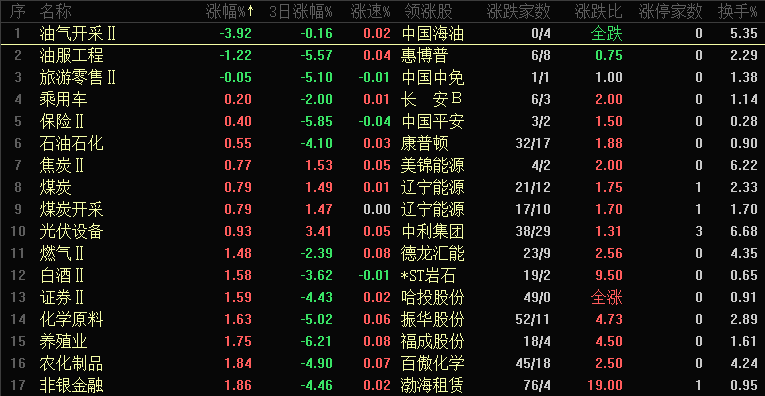 今日仅油气开采、油服工程、旅游零售三个板块下跌,下跌个股仅 329 家,但仍需警惕个股风险:大盘尚未确认止跌,若出现二次下探可能再度引发大面积下跌;同时强势股补跌迹象显现,部分品种从高点回撤超 30%,下跌速度快甚至出现连续跌停。石油板块此前走势混乱、操作难度大,逆势上涨后需警惕补跌风险。