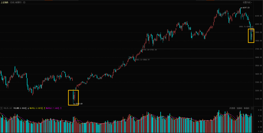 【技术分析】大盘收出反弹阳线,涨幅 1.78%,已吞没昨日中阴线三分之二的实体,反弹力度尚可。此位置能否进场抄底?从日线形态来看,当前走势与 2025 年 4 月 7 日很相似:都是跳空低开后收出中长阴线,随后出一颗阳线反弹,但两者还是有区别的: