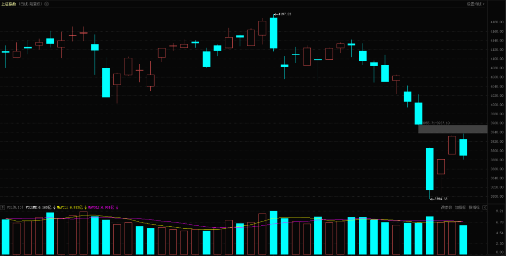 2. 上方 3955 点缺口未完成回补,且 10 日均线持续向下压制(当前约 3977 点),大盘暂不具备直接突破的动能;