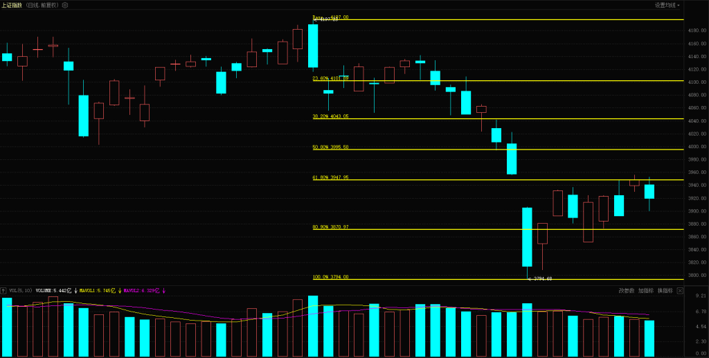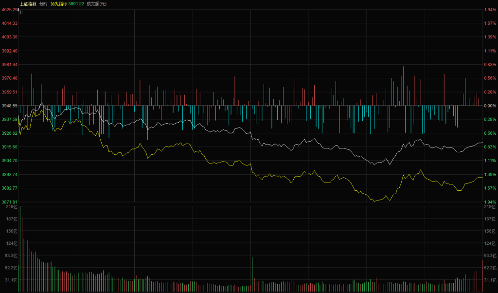 上证指数低开 3940 点,开盘后展开一波反弹,最高上冲至 3952 点,但仅持续 10 分钟且勉强翻红,后续未再出现翻红机会,随即进入震荡下行结构,黄白线同步走低,尾盘下跌速度有所放缓。最终上证指数报收 3919 点,下跌 0.74%;创业板低开低走,表现更弱,最终报收 3172 点,下跌 2.31%。