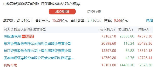 1. 中钨高新(000657):稀有金属 + 硬质合金,游资合力封板