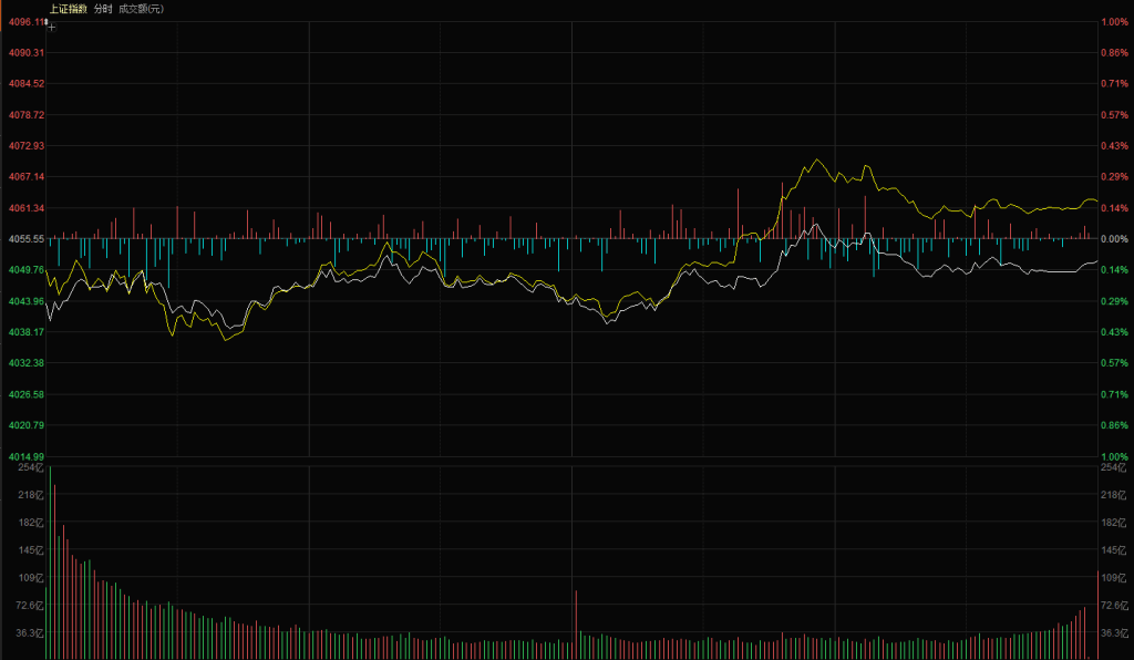 市场观察】今日上证指数低开于4043点,随后维持低位震荡走势。午后开盘虽尝试组织反弹并一度翻红,创出日内高点4058点,但尾盘再次震荡回落。整体来看,全天呈现窄幅震荡态势,波动幅度仅20个点,最终报收4051点,微跌0.10%。创业板指开盘后快速拉升,随后转入震荡整理,黄白线分化明显,最终报收3678点,上涨1.43%。