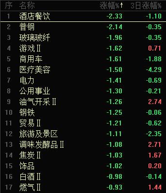 今日板块跌幅靠前的是酒店餐饮、普钢、玻璃纤维、游戏、商用车、医疗美容、电力、公用事业、油气开采和钢铁等。资金集中出击几个带动市场人气的板块,而二线和三线权重板块走势相对弱一些,但板块整体风险不大。个股跌停家数达到52家,伴随着年报和一季报结束,个股还需要逐步消化风险的过程,可能还需要1-2周时间慢慢消化,需要回避这类品种。