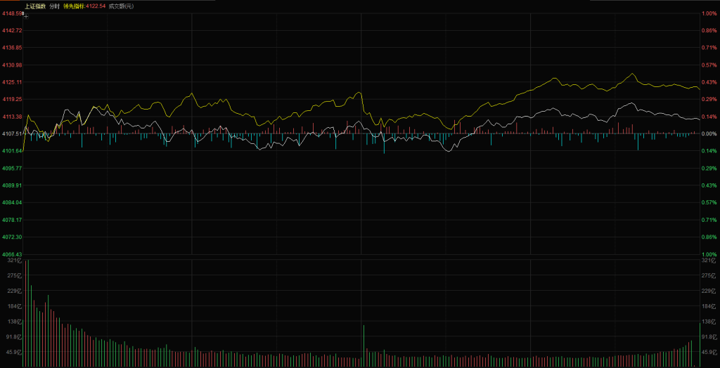上证指数开盘4107点,今天是4月份最后一个交易日,即将迎来五一小长假。通常这个时间段市场都会以稳定为主,分时结构来看,全天处于小幅横盘震荡走势。最高点4118点、最低点4100点,上下波动不到20个指数点。午后虽然尝试了一波上攻,但也没有成交量配合。最终上证指数报收4112点,上涨0.11%,多方完成了守势任务。创业板报收3677点,下跌0.27%。