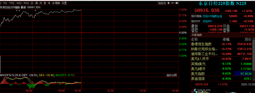 【外盘直击】2024年进入尾声,美股沉浸在一片乐观的年末行情中。上周五三大指数集体上涨,道指涨0.42%,标普500指数涨0.56%,双双刷新历史纪录,纳指涨0.83%。从一周表现来看,美股三大指数均上涨,道指、标普500指数和纳指分别累计上涨1.39%、1.06%和1.13%。从月度表现来看,道指累计上涨了7.54%,标普500指数上涨5.73%,双双创下今年最大月度涨幅,纳指累计上涨6.21%。三大股指的年度涨幅均十分可观,截至11月29日,纳指已大涨28.02%,标普500指数上涨26.47%,道指上涨19.16%。如果年末标普500指数继续走高,今年涨幅突破29.60%,就将创下21世纪以来最高涨幅。