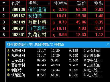 最新重磅升级强势龙头票《寻龙536操盘策略》,即先用5大强势龙头股选股战法模型,预警选出趋势企稳向上龙头票;再结合分时铁3项主力数据,选出预警中主力资金买入明显个股;然后用分时6项基本技术指标选出分时技术刚金叉向上,且为突破形态个股择机建仓等!专注当日有望涨停或短线有望爆发个股,形成一套更趋完善的强势股量化盈利模式!
