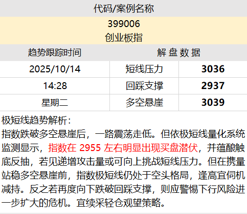 量化智能解盘:【创业板指】
