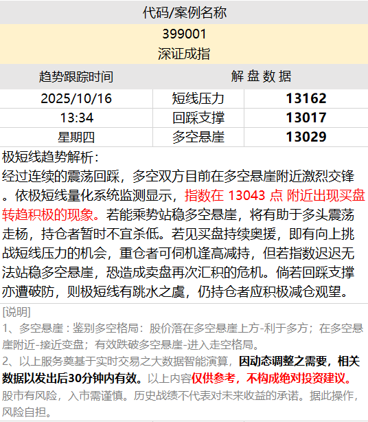 量化智能解盘:【深证成指】