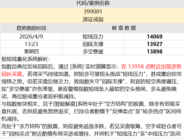 量化智能解盘:【深证成指】