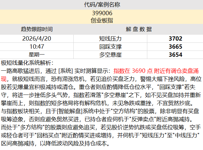 量化智能解盘:【创业板指】