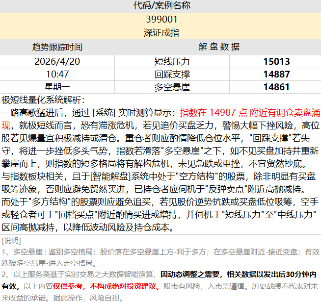 量化智能解盘:【深证成指】