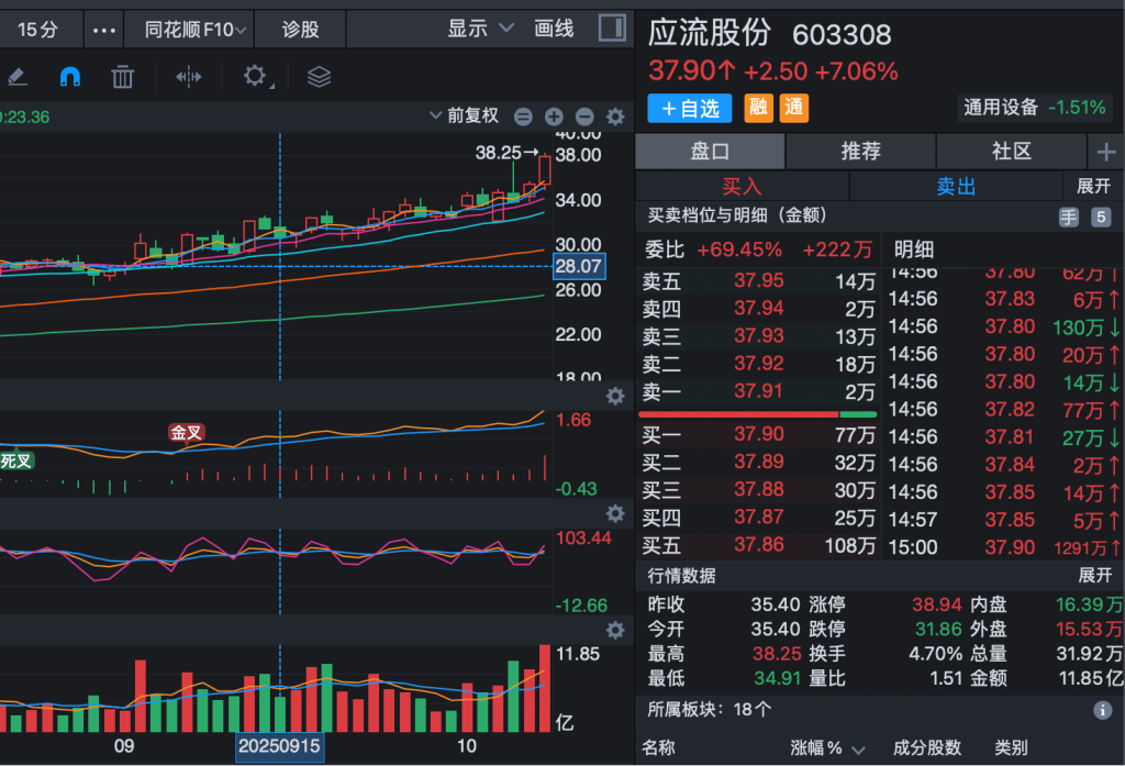 应流是9月中我们策略直播和日报提及分析的实战案例。目前均线开始加速,结合我们直播讲解的节奏,根据风偏选择适合自己的策略。另外,中间多次恐慌,或者躺不住的同学,可以在一个月之后回顾一下之前的心态,再判断下自己是不是真的能躺住的、适合中线的。