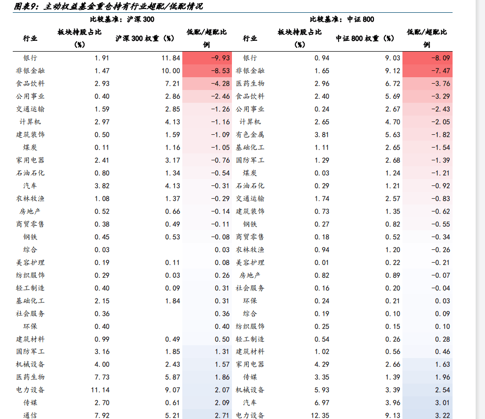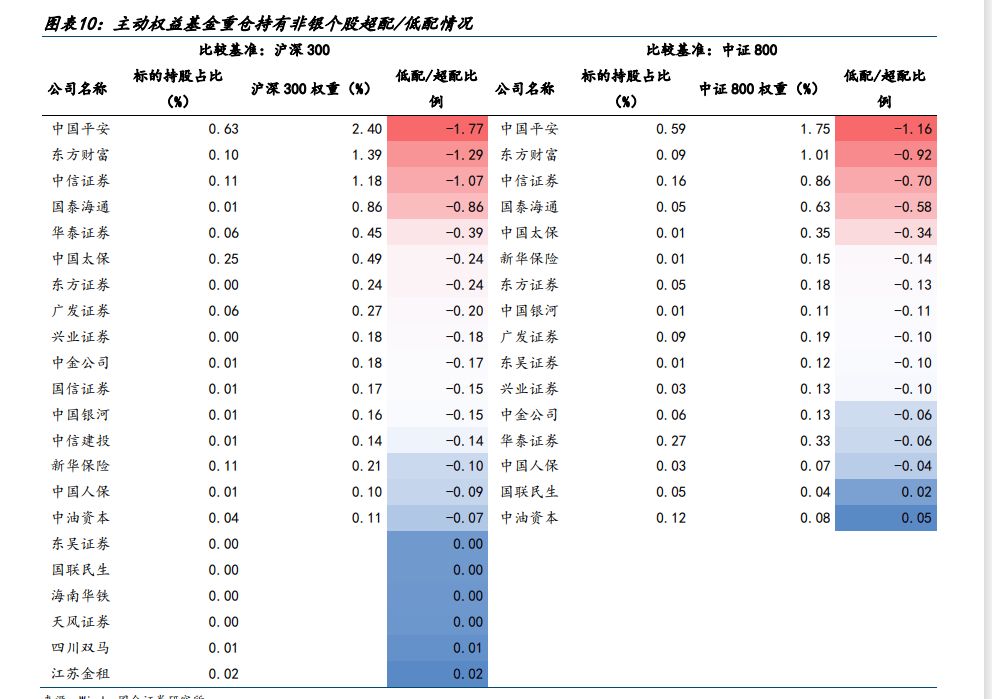 1. 核心价值逻辑:以沪深300、中证800为基准(考核权重50%+)的主动权益基金中,非银金融行业显著低配(沪深300基准下低配8.53个百分点,中证800基准下低配7.47个百分点),新规推动下有望成为增配方向。